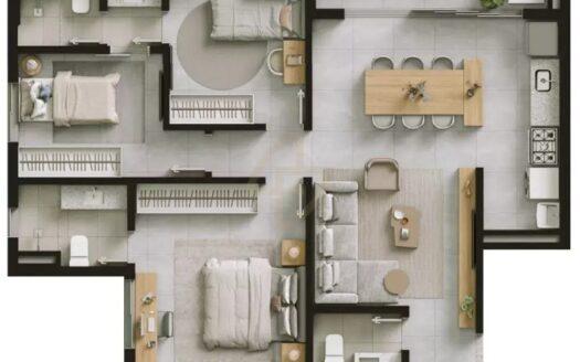 HELLO VIVER UNIVERSITARIO Unidade 1005 – 83,57m1 vaga de garagem3 quartos